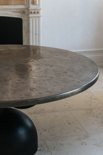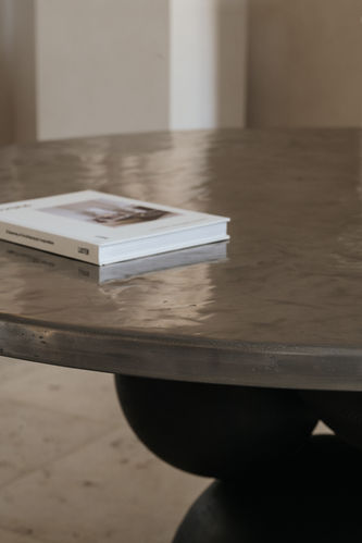 De Ripple tafel is een fascinerend meubelstuk dat zowel nieuwsgierigheid wekt als een gevoel van elegantie uitstraalt. Het metalen tafelblad, dat doet denken aan de serene bewegingen van water, nodigt uit tot interactie en biedt een visuele dynamiek. De houten sferen, die de tafel ondersteunen, voegen een element van speelsheid en organische warmte toe, waardoor er een mooi contrast ontstaat tussen de koele, strakke lijnen van het metaal en de natuurlijke textuur van het hout.